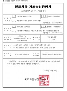 [철도안전법]에 따른 철도차량 개조 적합 증명서